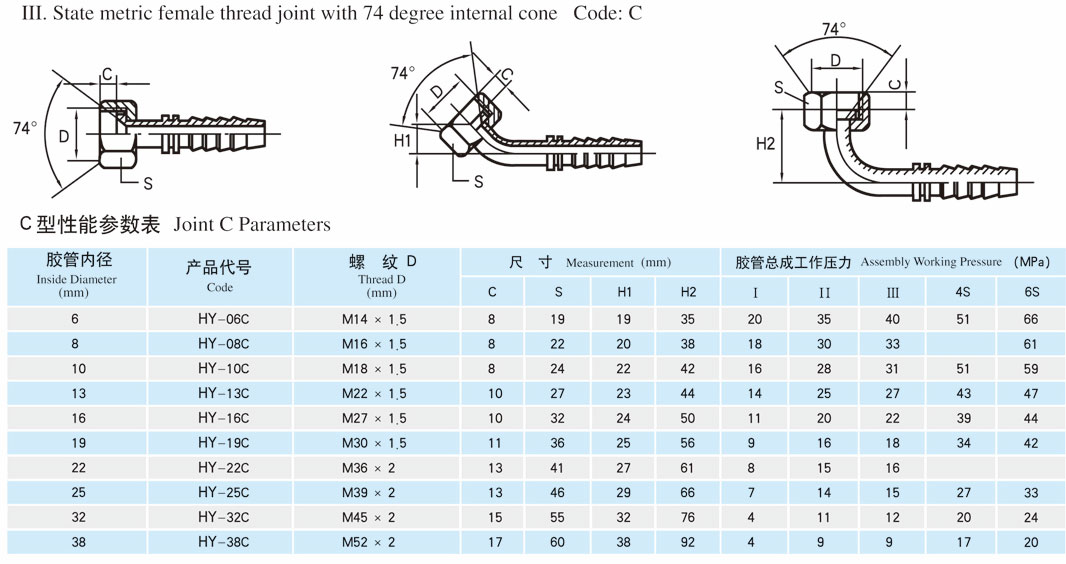 3.國(guó)標(biāo)公制內(nèi)螺紋74° 內(nèi)錐面接頭 接頭代號(hào):C型